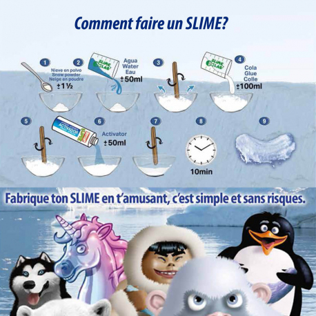Grâce au Kit Slime SNOW LOUP - 2 bidons de 180 ml. + 1 liquide activateur magique 250 ml. réalise le plus gros SLIME que tu n'as jamais réalisé ! Ou plusieurs petit SLIME.